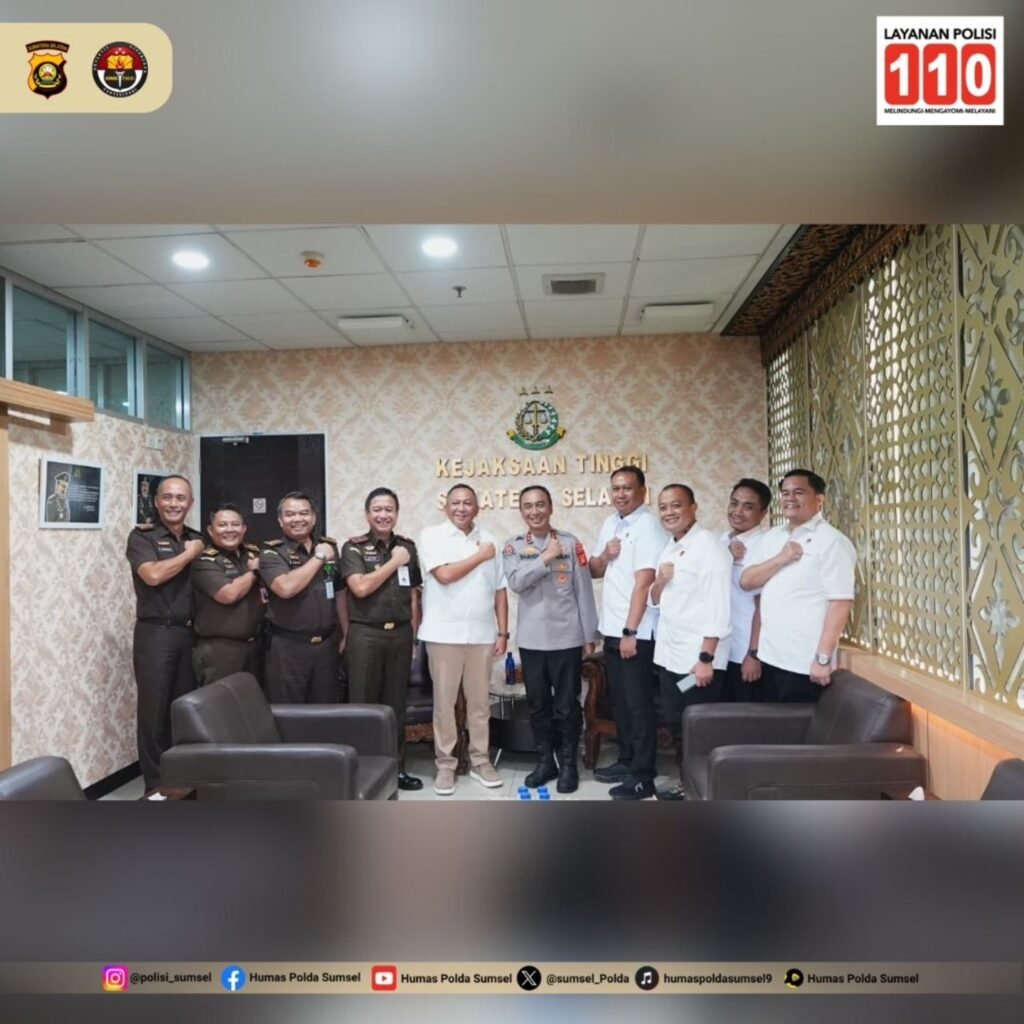 Palembang – Kapolda Sumatera Selatan melaksanakan lawatan kerja ke Kantor Kejaksaan Tinggi Sumatera Selatan pada pukul 14.00 WIB hingga selesai. Kegiatan yang berlangsung di Kantor Kejati Provinsi Sumatera Selatan tersebut bertujuan untuk mempererat hubungan kelembagaan serta meningkatkan sinergitas dalam pelaksanaan tugas penegakan hukum di wilayah Sumatera Selatan.